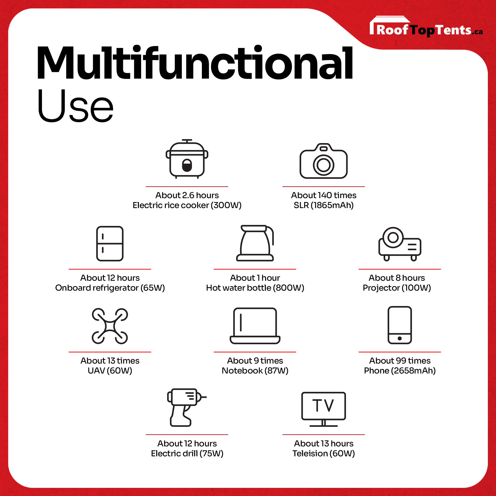 With dimensions of 30.5 cm x 30.5 cm x 20 cm (12” x 12” x 7.87”), this power station is lightweight, portable, and easy to carry, making it ideal for outdoor enthusiasts and travelers.