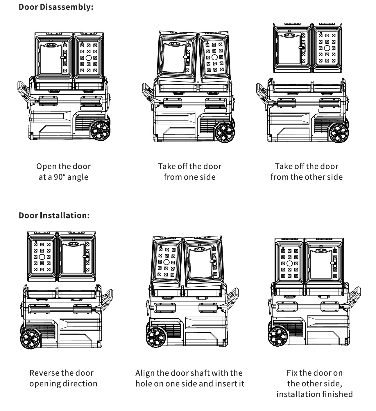 • Convenient and User-Friendly Design: The detachable doors offer flexibility in usage and space optimization, making access to your provisions easier. Designed for rugged use, it includes durable off-road wheels and a sturdy extendable handle, enhancing portability for outdoor activities.