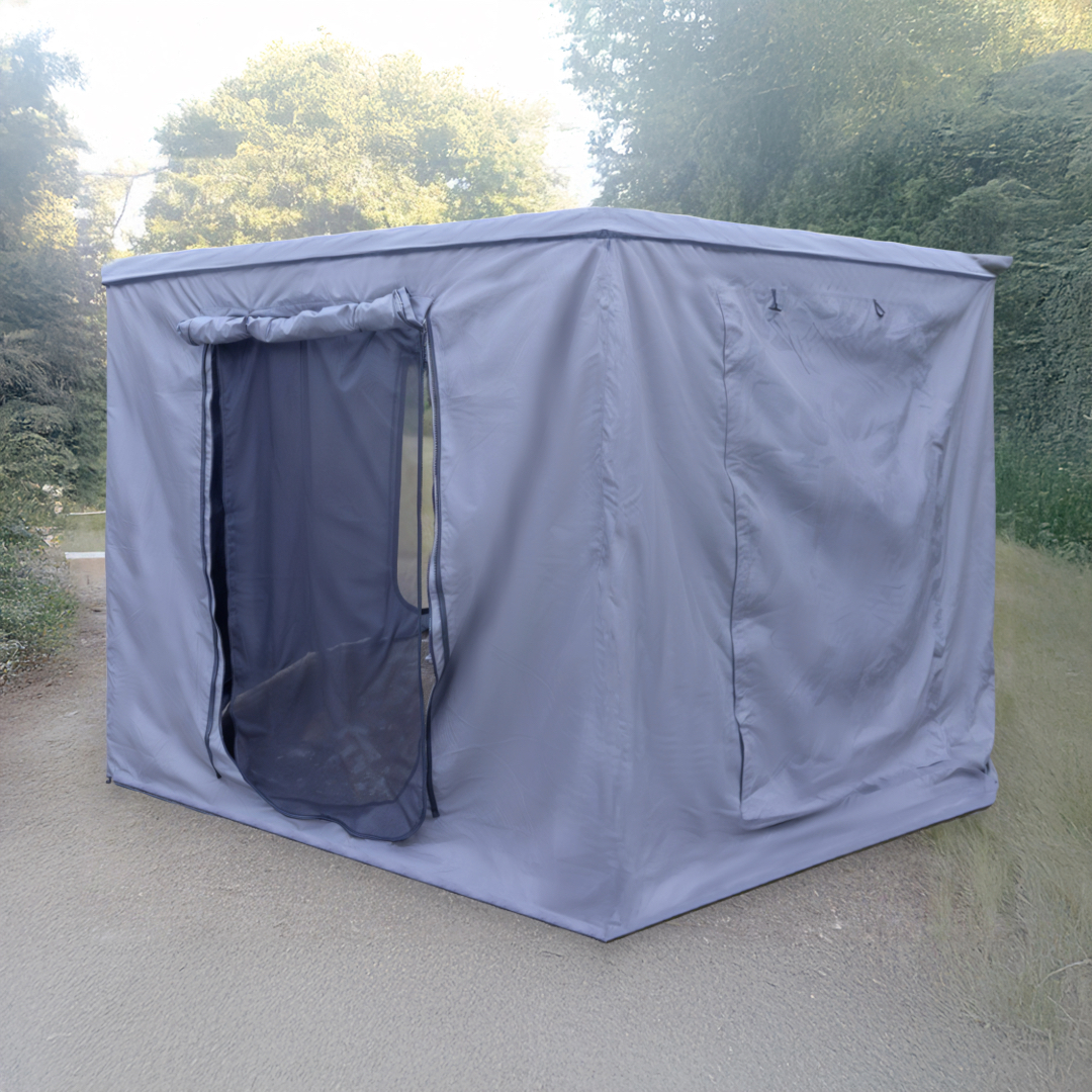 The Batwing Awning (270 Degree) with Annex Room is the ultimate solution for campers and outdoor enthusiasts seeking enhanced privacy and weather protection. Equipped with zip-up walls, this enclosed outdoor awningtransforms into a secure and versatile space for a variety of activities.