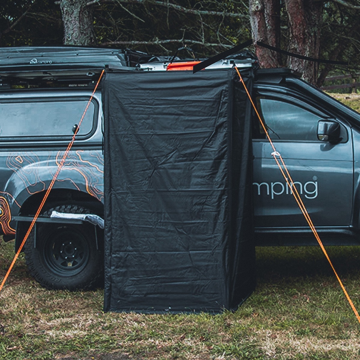 Spacious enough to comfortably accommodate two lean adults, the Kermode Auto Personal Tent meets a variety of outdoor needs. Whether used as a changing room, a camping toilet, a privacy tent, or a shower tent, it provides ample space and comfort. This tent is specifically designed for use with SUVs, Jeeps, trucks, and vans, enhancing your car camping experience.