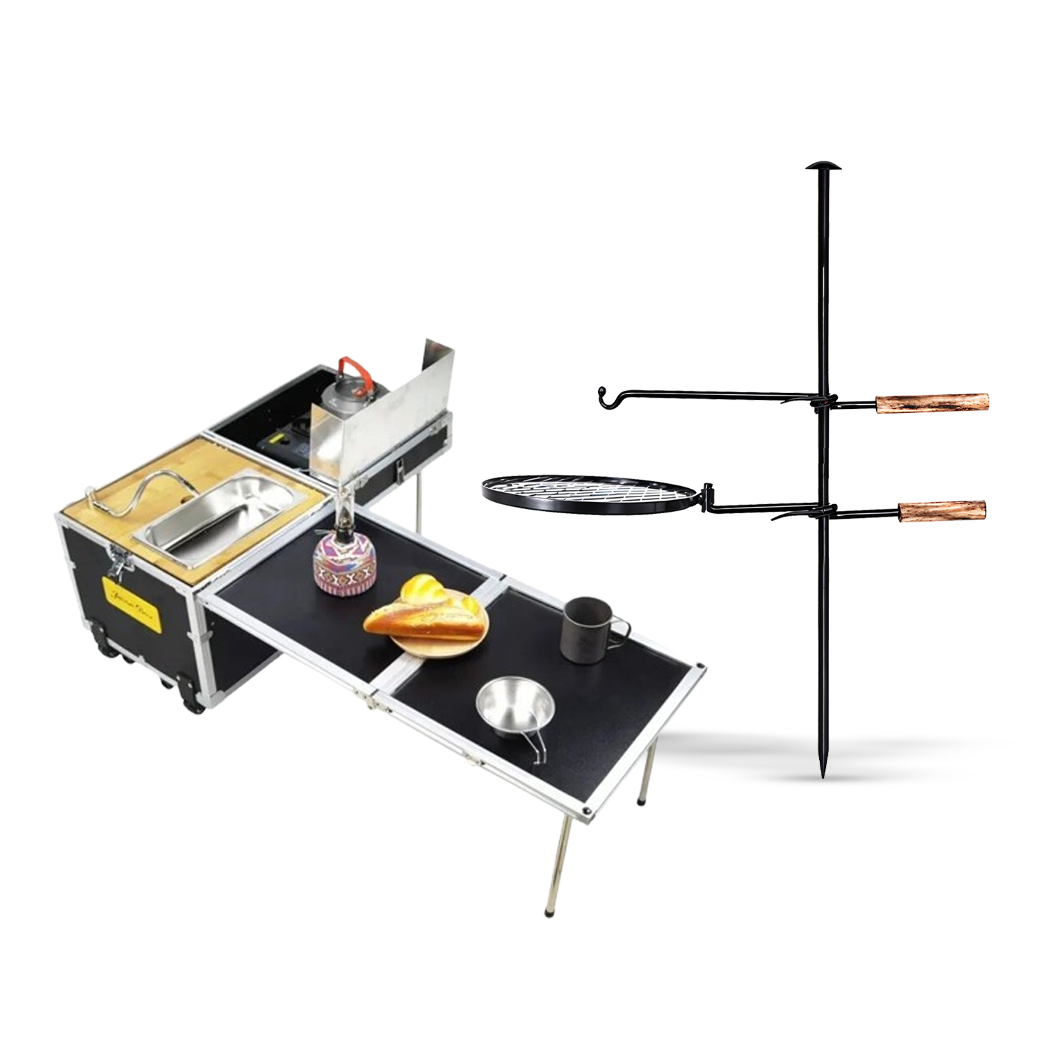 This all-in-one outdoor cooking bundle is made for serious campers, overlanders, and weekend chefs who want a full setup anywhere they park. The adjustable grill gives you that classic fire-cooked taste, while the TrailChef Mobile Kitchen brings the convenience of home cooking, complete with a stove, sink, and prep areas. No more juggling gear — just set up and start cooking.