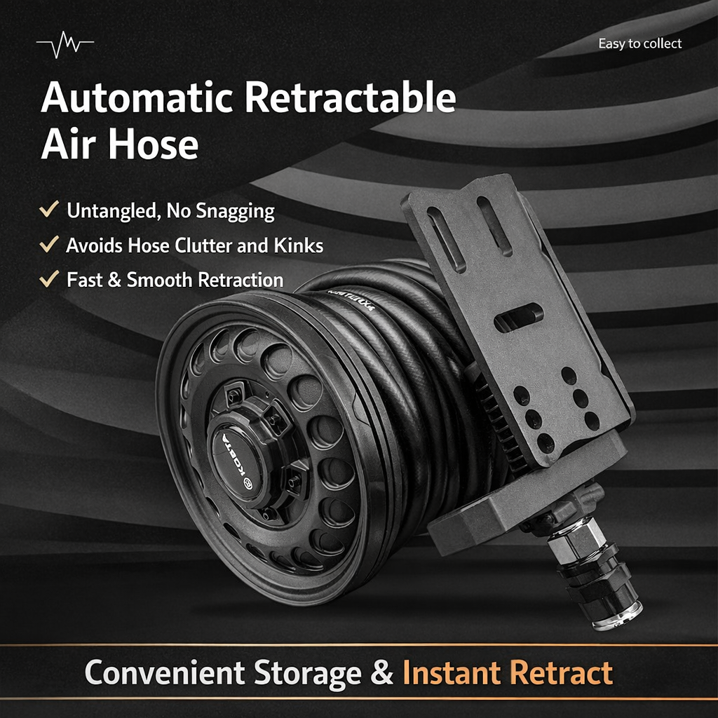 Upgrade your onboard air setup with a compact, vehicle-ready automatic retractable air hose reel system.