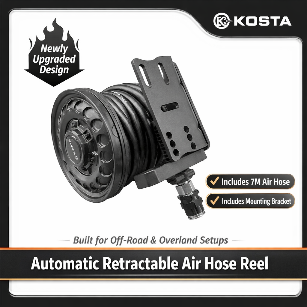 Built for overland builds, off-road rigs, and truck canopy installations, this unit keeps your air hose clean, organized, and instantly deployable—without tangles, kinks, or messy storage.