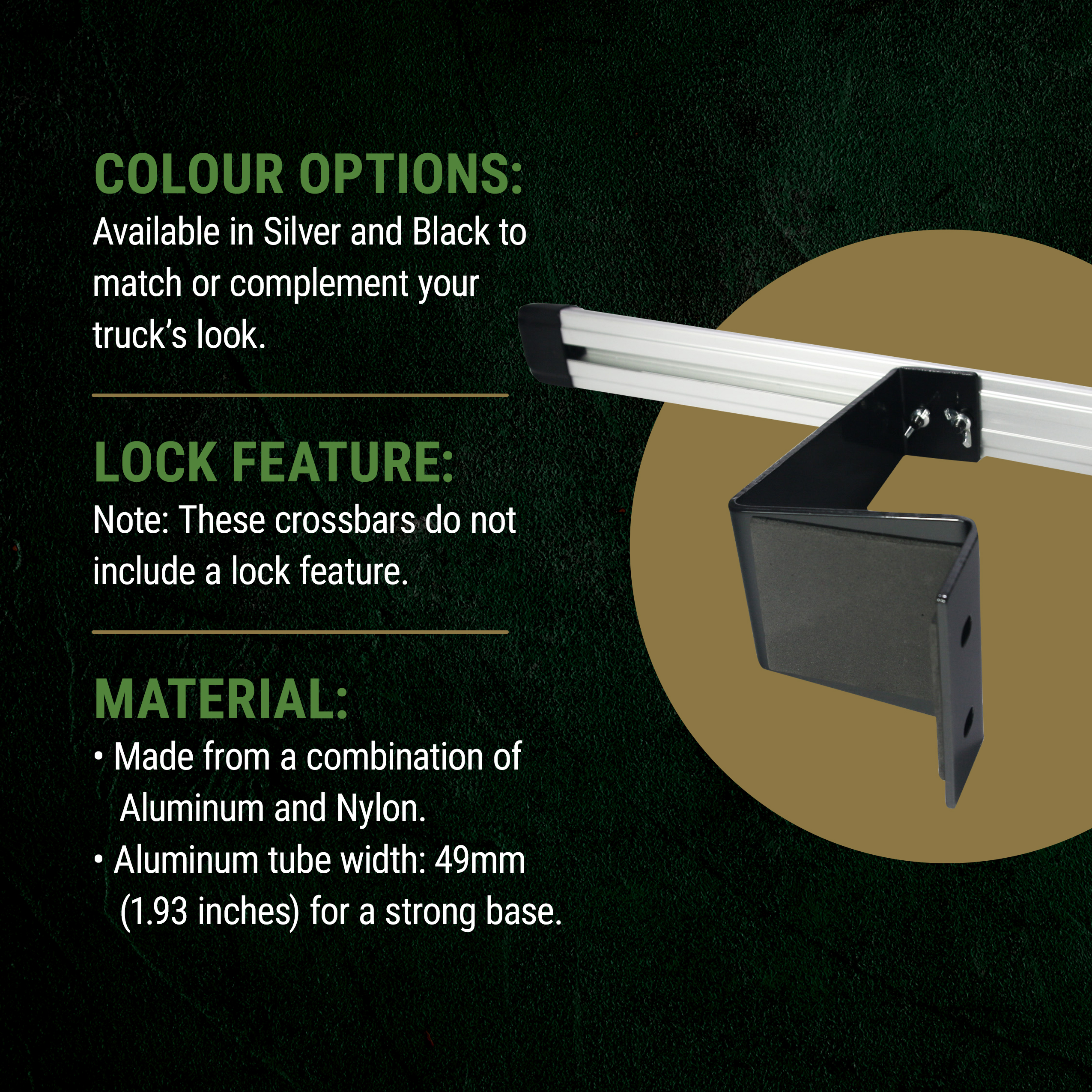 Choose between Silver or Black cross bars to complement your truck’s look, providing aesthetic compatibility with any style.