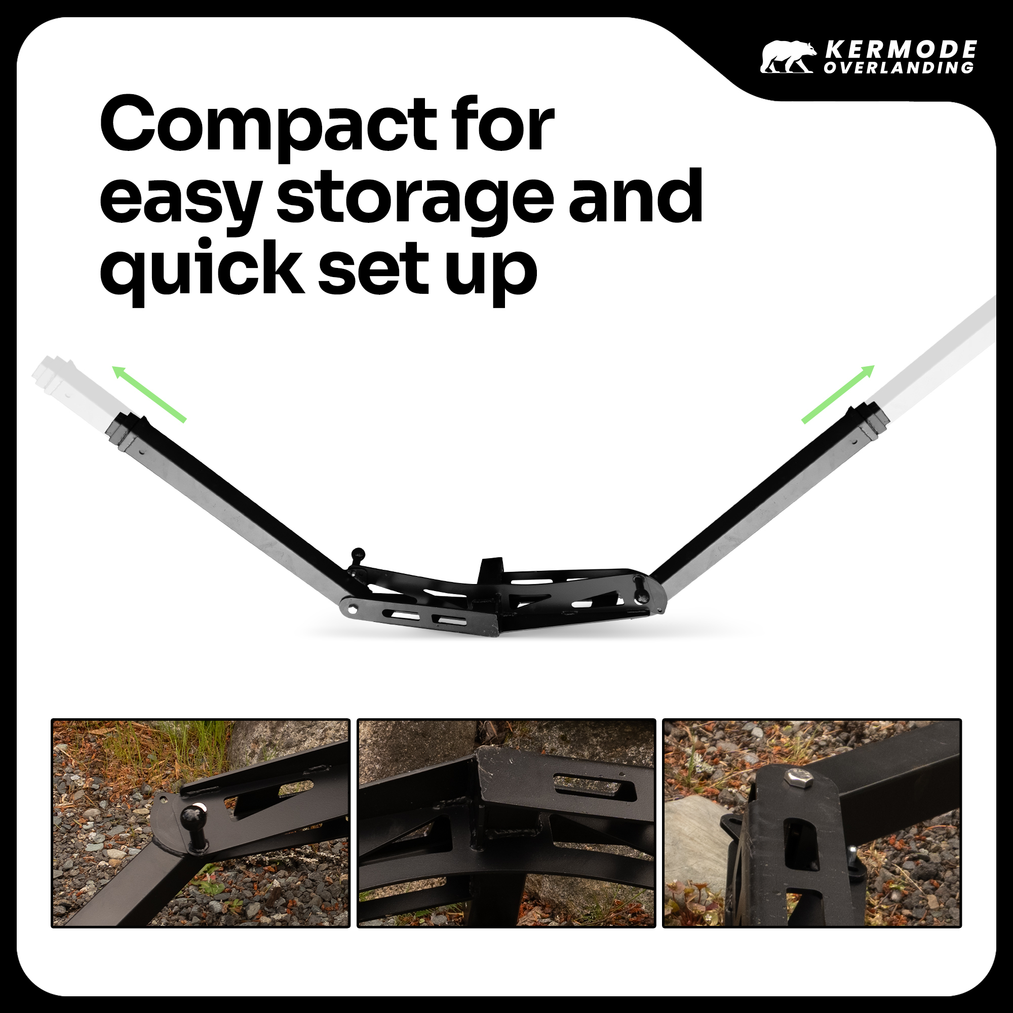 With a sturdy black powder-coated steel frame and 300 lb weight capacity, the HitchHaven Vehicle Hammock System is built for resilience. The robust materials ensure long-lasting performance in various outdoor conditions, making it an essential tool for camping and road trips.