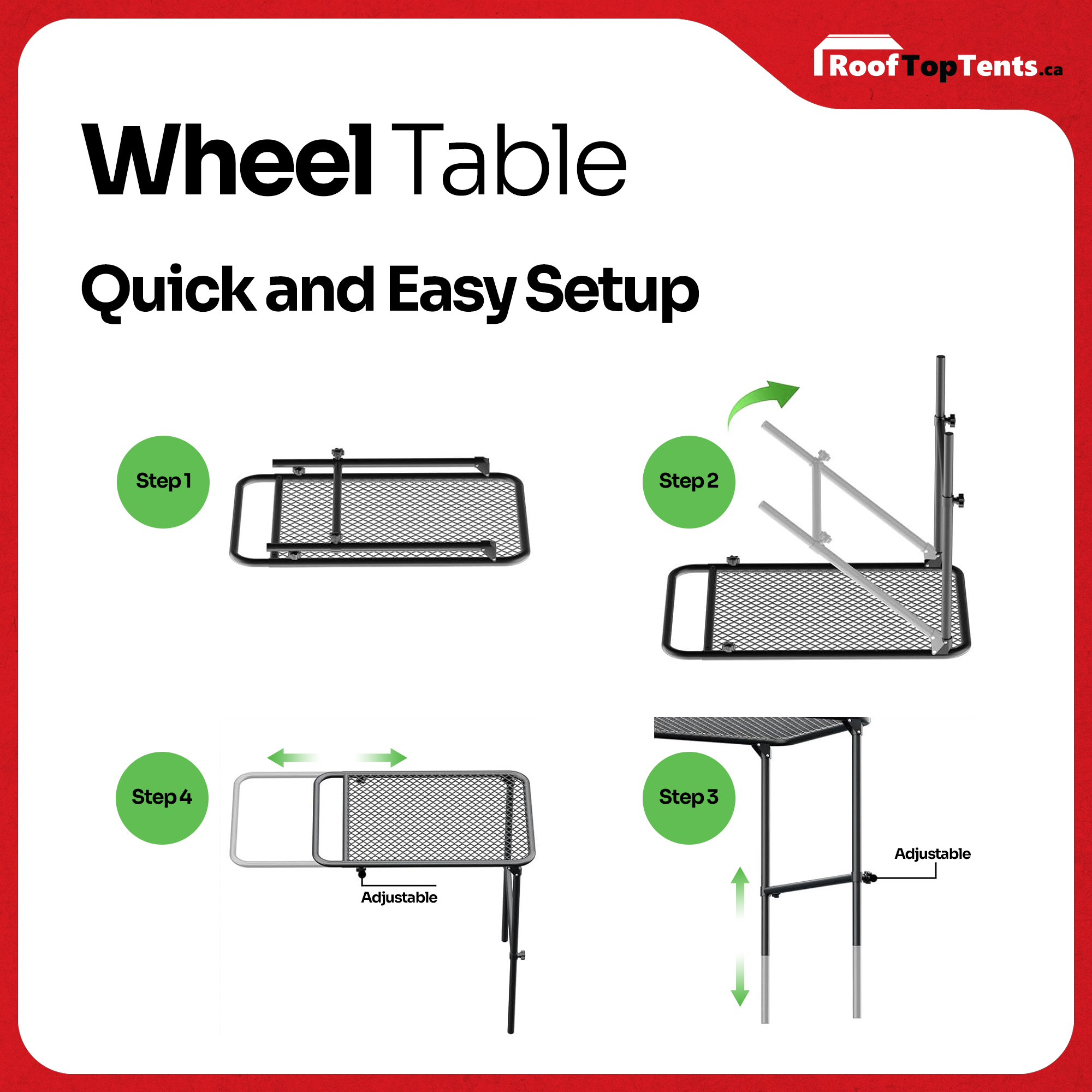 • Quick and Easy Setup: This table attaches seamlessly to your vehicle’s wheel and sets up within minutes, perfect for spontaneous adventures or planned stops.